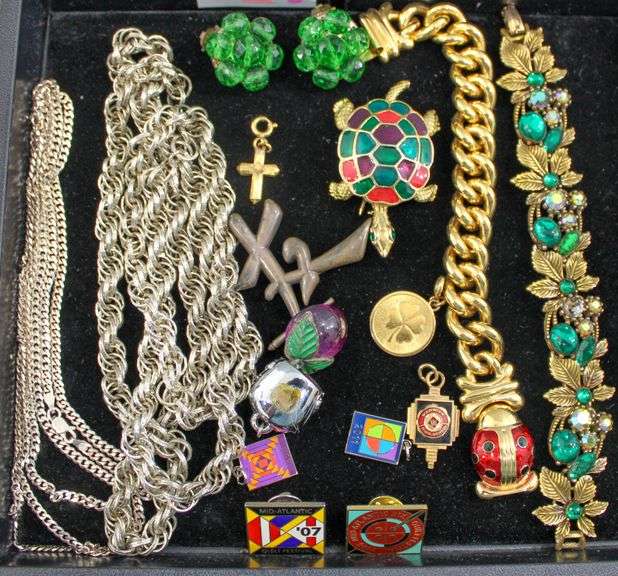 Curb link Necklace marked 925, but is magnetic, 48"; Cross Pendants / Charms; vintage Bracelet from W. Germany; Joan Rivers lady bug Bracelet and more.