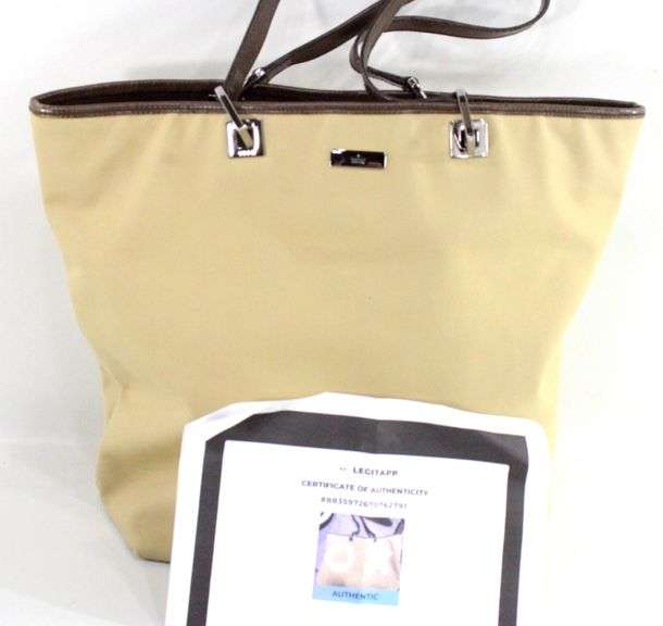 LOT 403 - Authentic Gucci Leather and Canvas Handbag. Comes with a Certificate of Authentication.