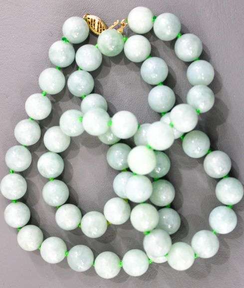 14 KT Gold clasp on a knotted Jade bead Necklace, 24"