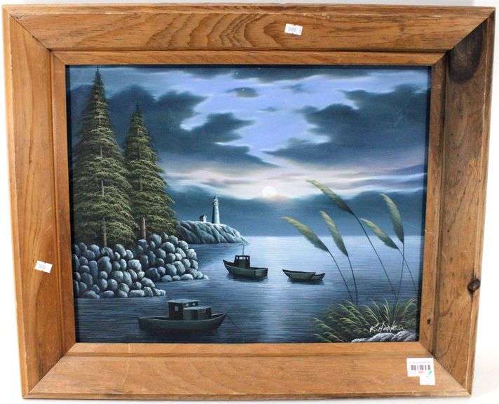 Signed Harbor with Lighthouse by K. Horkin, 21" x 25"