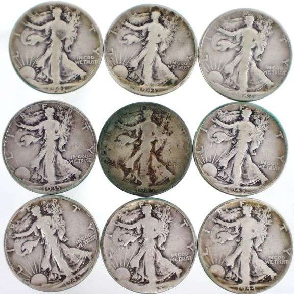 LOT 329 - Walking Liberty Silver Half Dollars , 9 items