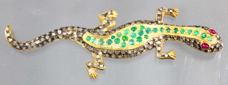LOT 195 - Diamond, Ruby, and Gilt Sterling Silver Dolphin Pin / Pendant
