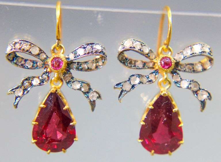 LOT 145 - Diamond, Ruby, and Gilt Sterling Silver Earrings