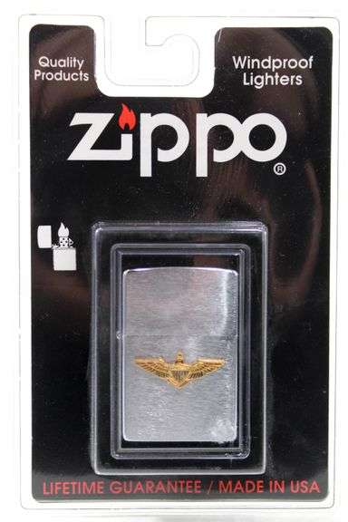 LOT 144 - New in package Zippo lighter with the gold pilots wings