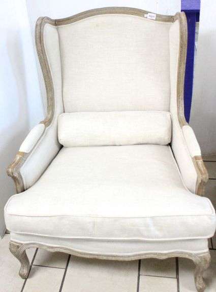 LOT 136 - Wingback Weathered Wood Upholstered Chair. 32x28x42