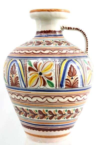 LOT 51 - Signed and Numbered - Sanguino Toledo Pottery Spanish Glazed Art Pottery Pitcher - 14 x 9