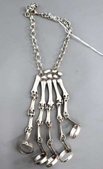 LOT 45 - Halloween Fun - Bracelet with attached boney finger Rings, all parts adjustable.