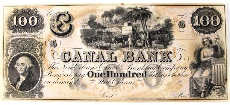 Obsolete currency ,1850s $100 Bank Note From The Canal Bank in New Orleans, Louisiana, #G60A