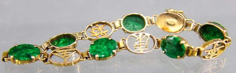 14 KT Gold and Jade Bracelet, 6 1/2". (8.2 gm t.wt)