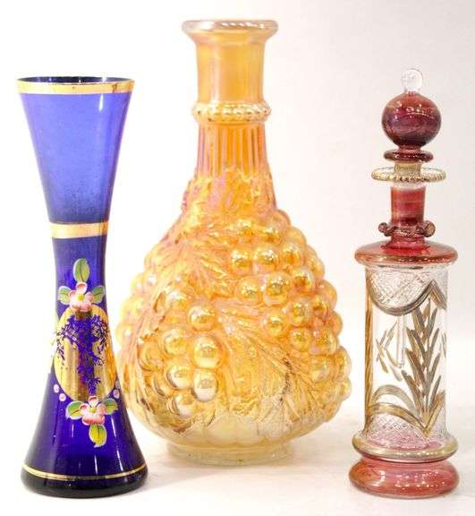 LOT 614 - Art Glass Perfume Bottle and Vases by Nasco Japan and More