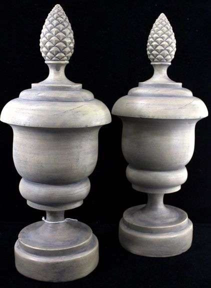 LOT 597 - Wooden Finial Sculptures - Pair - 19" each