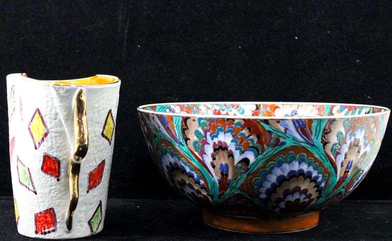 LOT 583 - Vintage Hand Painted Peacock Bowl - and - Signed Geometric Studio Art Vase