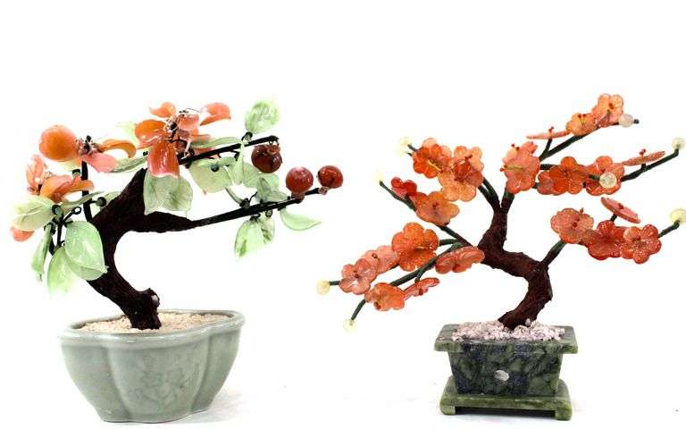 LOT 441 - Jade Aventurine Handcrafted Bonsai Tree Sculptures