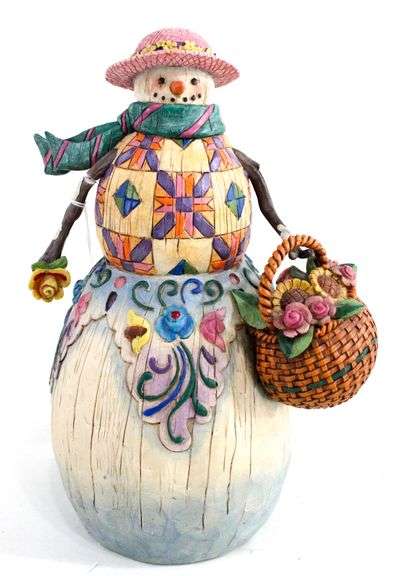 LOT 436 - Heartwood Creek by Jim Shore for Enesco Winter's Promise Snowman with Flower Basket 112245 Figurine