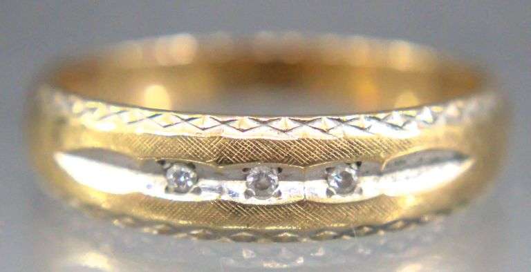 LOT 435 - 14 KT Gold and Diamond (tested) Band Ring, size 8 1/2. (3.6 gm t.wt)