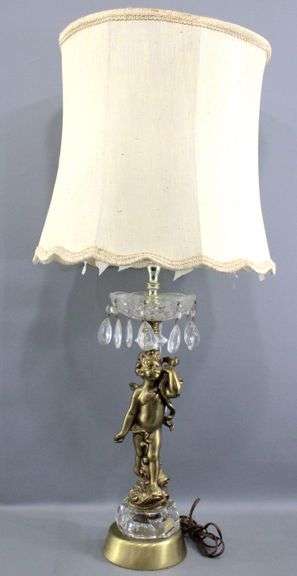 Art Nouveau Cherub and Prisms Table Lamp with Shade - 35"
