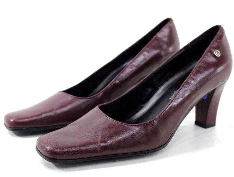 LOT 397 - Etienne Aigner Square Toe Leather Heels - Size 5M