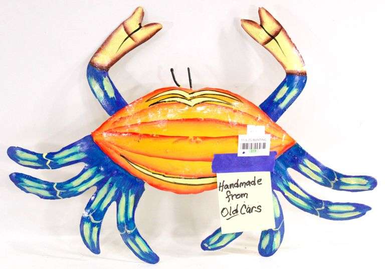 LOT 319 - Orange Crab Metal Wall Sculpture Handcrafted from Old Cars Salvage. 18"