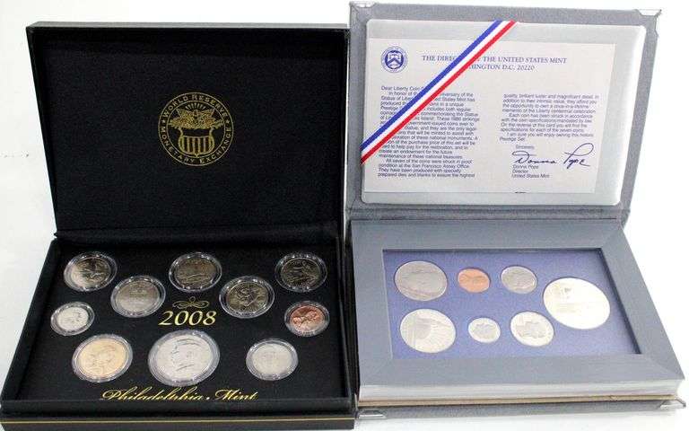 1986 Prestige US Proof Sets and 2008 Philadelphia Mint Uncirculated Set.