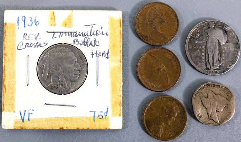 1929 Walking liberty silver half , 1936 Buffalo Nickel , 1838 flying eagle cent , and assorted pennies