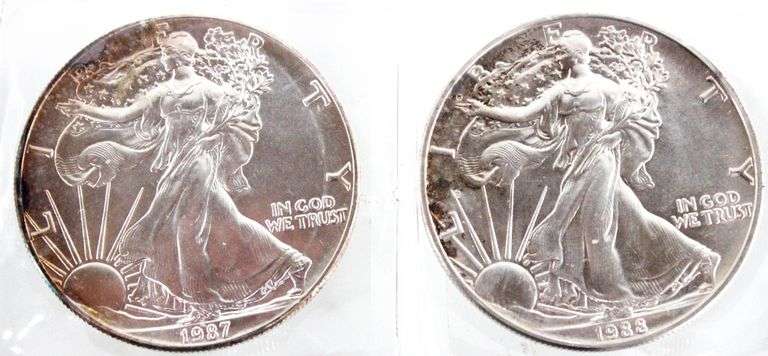 1987 and 1988 American Eagle 1 oz .999 silver dollars , 2 oz total weight , 2 items