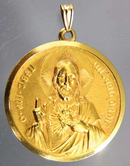 LOT 205 - 18 KT Gold Sacred Heart Pendant. (9.1 gm)