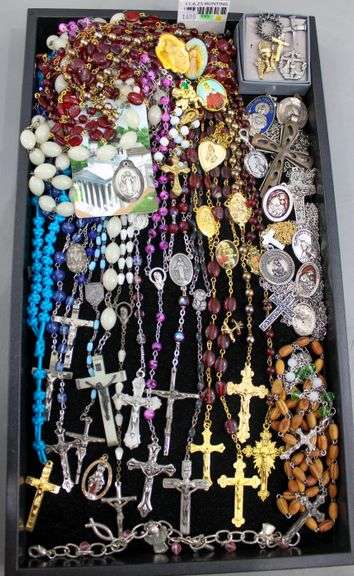 LOT 195 - Rosaries, many from Italy, all intact. Also, Religious Bracelets, Pins and Pendants.