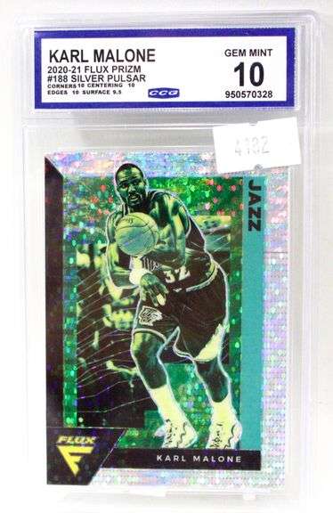 LOT 159 - Graded Karl Malone 2020-21 Flux Prizm #188 Silver Pulsar CCG 10 Mint