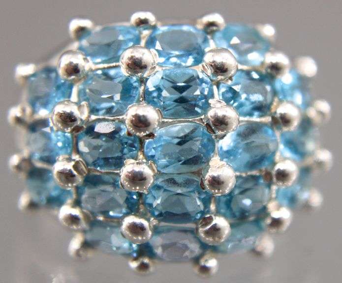 LOT 152 - Blue Topaz cluster (tested) Ring, Size 6.