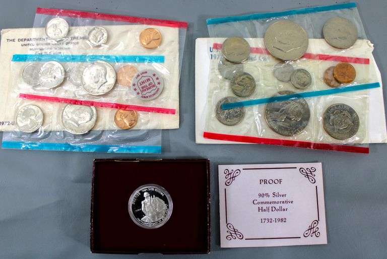 1972 and 1977 US Mint uncirculated sets and 1992 George Washington Silver Proof