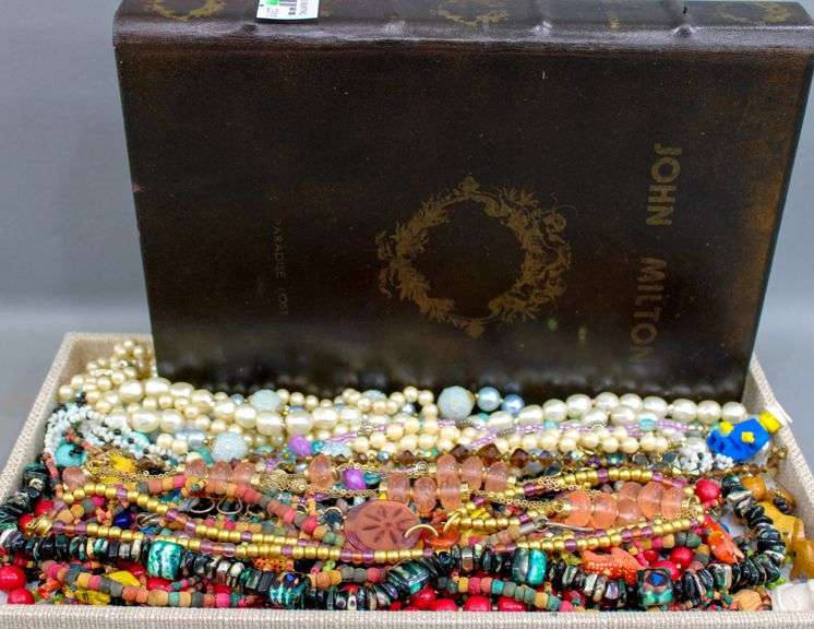 LOT 110 - Faux leather storage Book and all of the Necklaces that were hidden away.