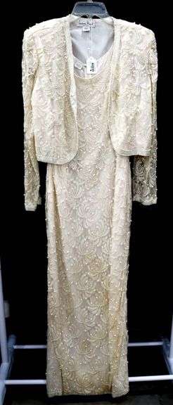 Laurence Kazar Lace and Beaded Floor Length Gown with Bolero Jacket size L