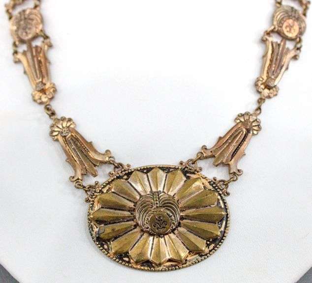 Antique Victorian Medallion Necklace of sculpted copper and brass