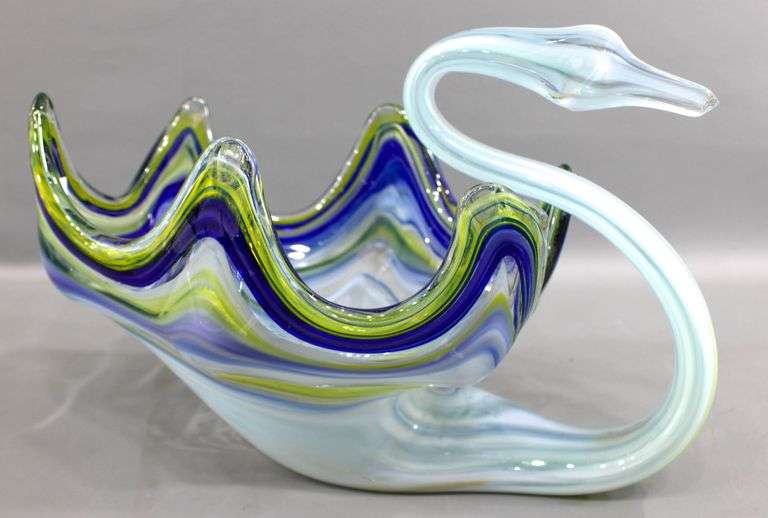 Murano Sommerso Art Glass Swan Centerpiece - 8 x 11 x 8