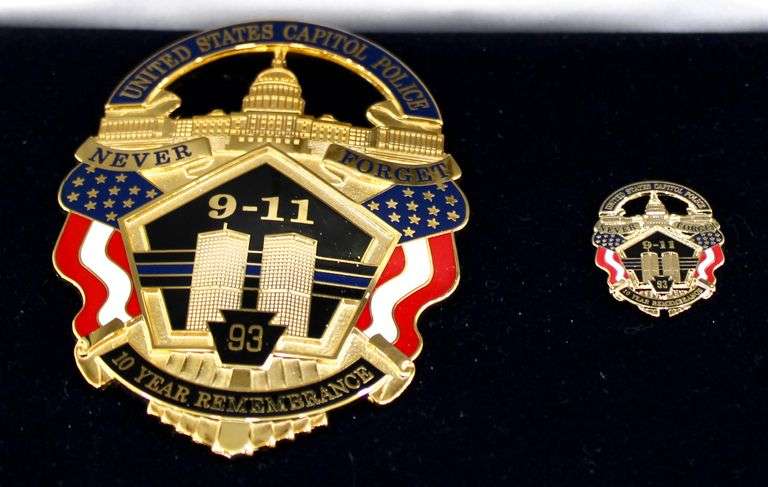 LOT 65 - United States Capital Police 911 ten year commemorative Badge and Pin, in a presentation case.