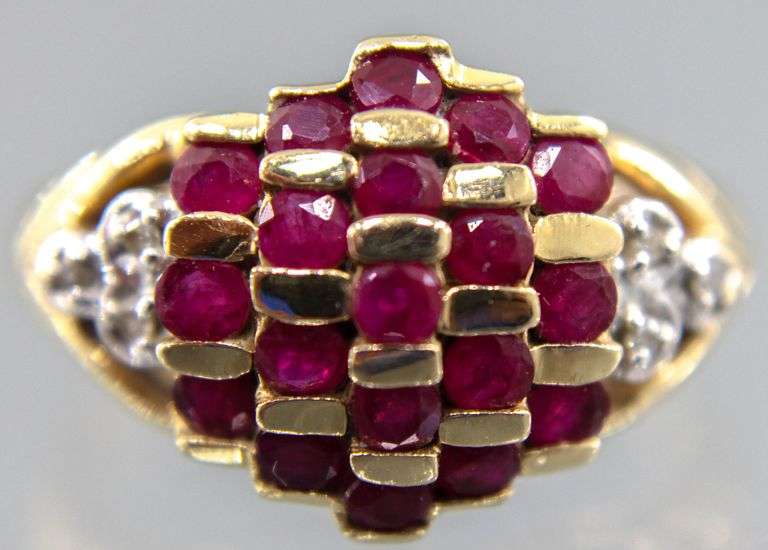 10 KT Gold Ruby and Diamond (both tested) Ring, size 8 1/4, 4.6g, in a gift box.