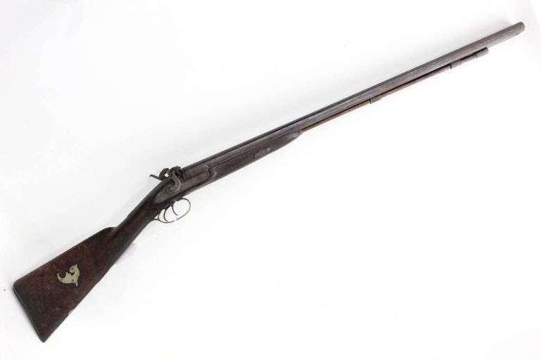 William Moore & Co. (1854-1872) English Double Barrel Antique ( black powder ) Percussion Shotgun, with metal accents and wooden ramrod. 46".