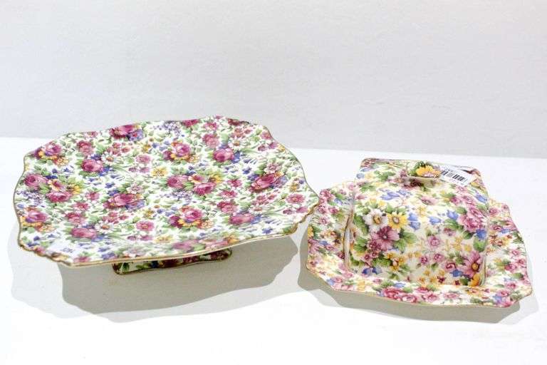 LOT 347 - Vintage Royal Winton Grimwades Summertime Chintz England Square Plate - and - butter dish with cover