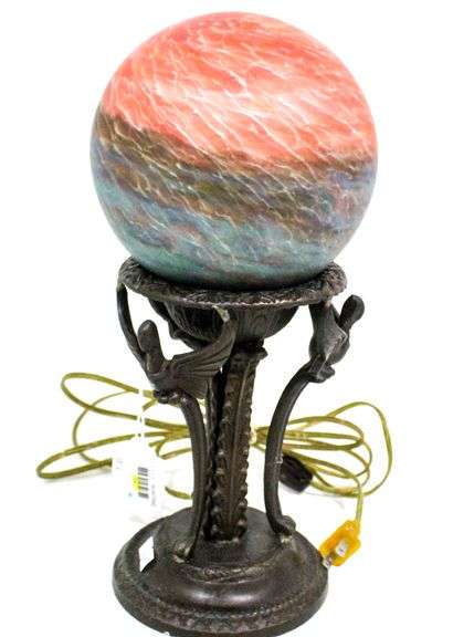 Art Deco Flying Eagle Figural Bronze and Art Glass Style Table Lamp